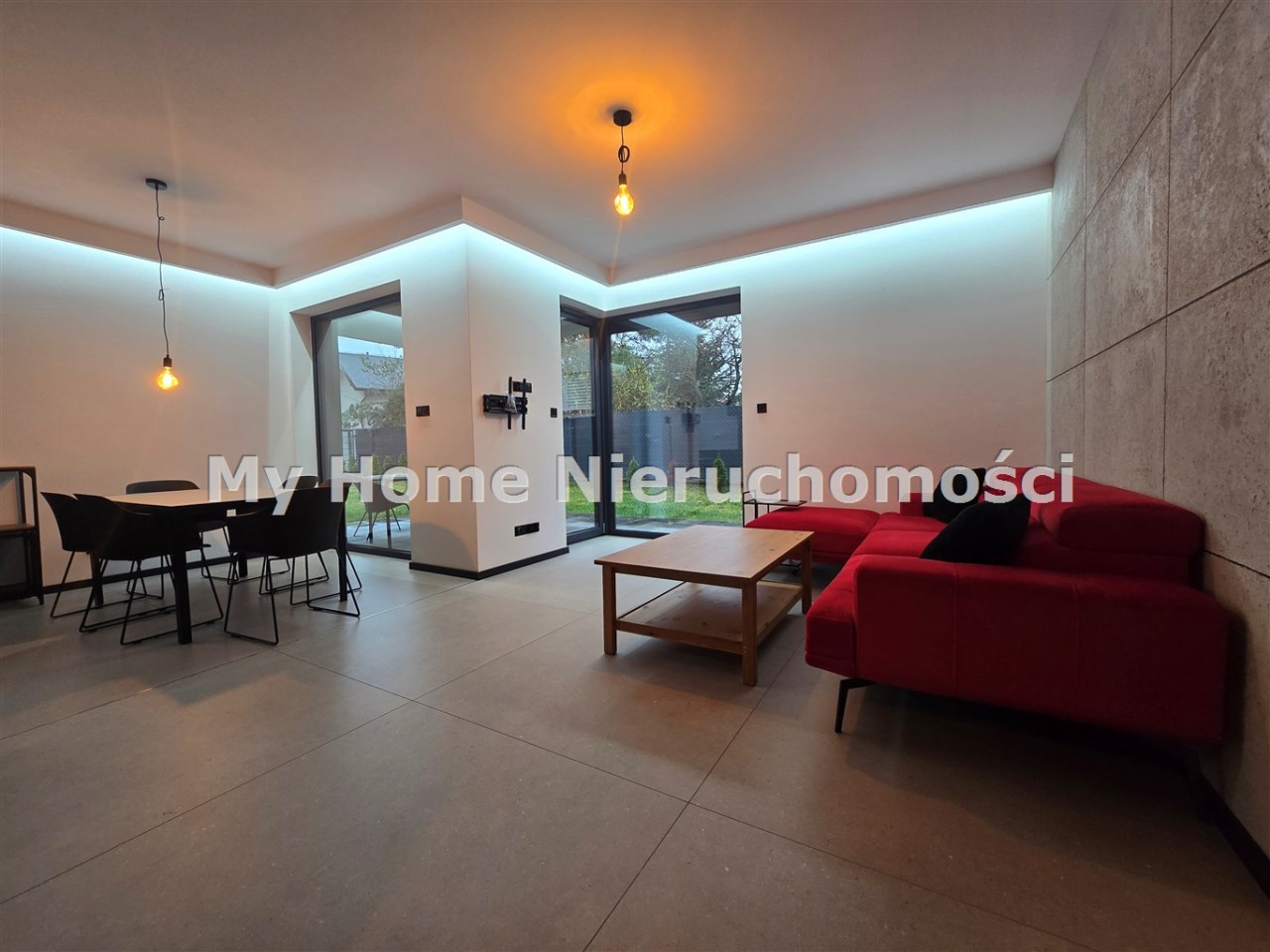 - duży przestronny salon połączony z kuchnią i jadalnią oraz wyjściem na taras,
